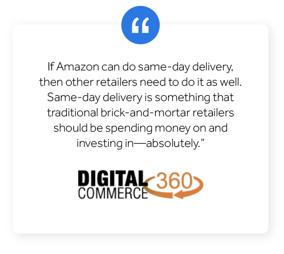 In a Digital Commerce 360 article, Rithum’s Senior Vice President of Strategy, Erik Morton, says, “If Amazon can do same-day delivery, then other retailers need to do it as well. Same-day delivery is something that traditional brick-and-mortar retailers should be spending money on and investing in—absolutely.”