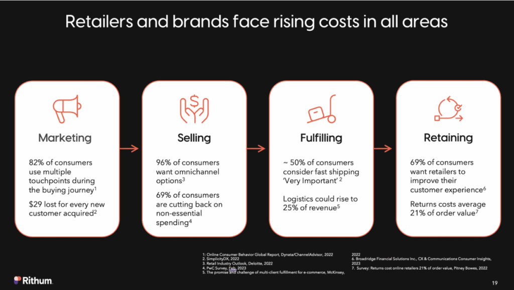 So how do brands and retailers do that? To combat these costs, Rithum allows brands and retailers to be asset light. Asset light inventory models increase profitability. It is also essential to be proactive about operational costs and get ahead of rising delivery and returns costs, Ramamurthy said.