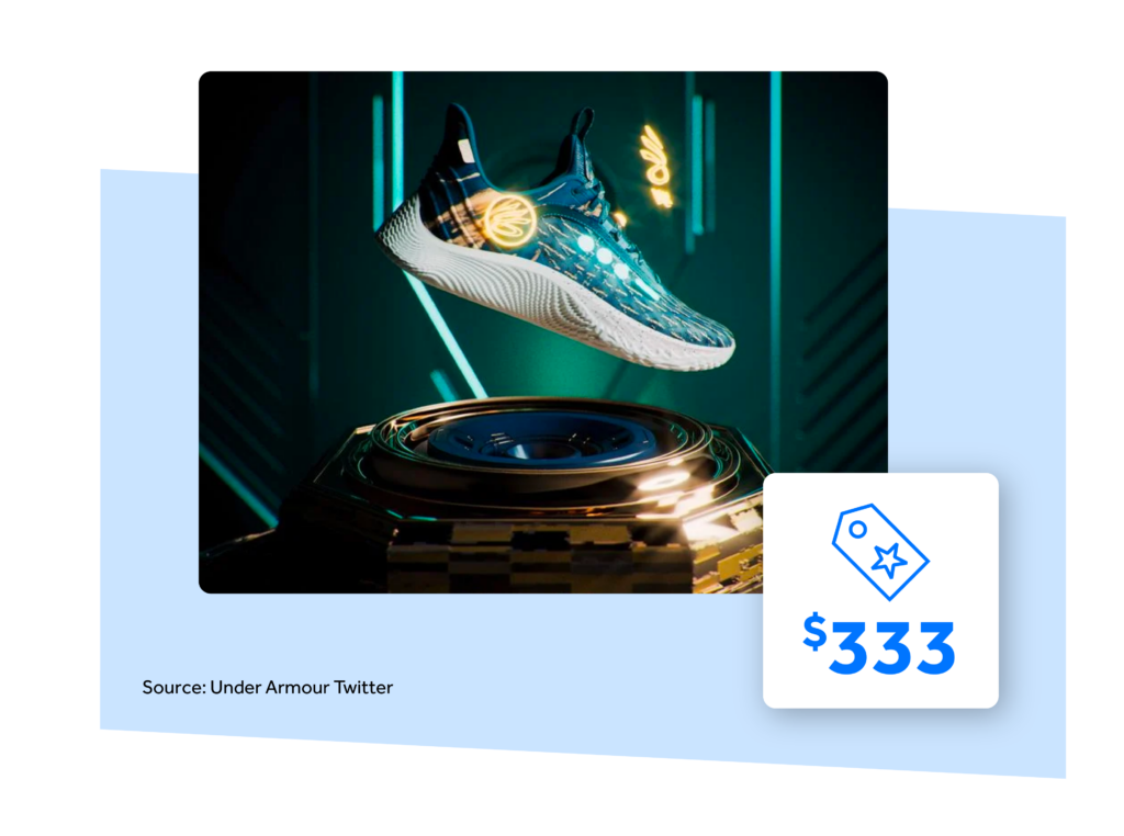 For example, Under Armour launched a series of footwear-themed NFTs priced at $333 each, featured in the image below. The company sold out of 2,974 copies after the December 2021 release.