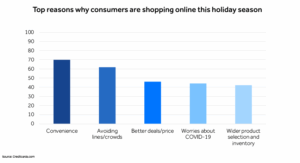 Consumer shopping behaviors have changed dramatically in the last year. While the shift was accelerated by the pandemic, consumers have found the convenience and ease of shopping online along with the peace of mind of staying safe to be the primary reasons they’re sticking with ecommerce. In fact, 62% of holiday shoppers are planning to make most of their purchases online. Retailers that are able to offer the best of both physical (buy online, pickup in store, curbside) and online delivery to home are at a significant advantage again this holiday season.