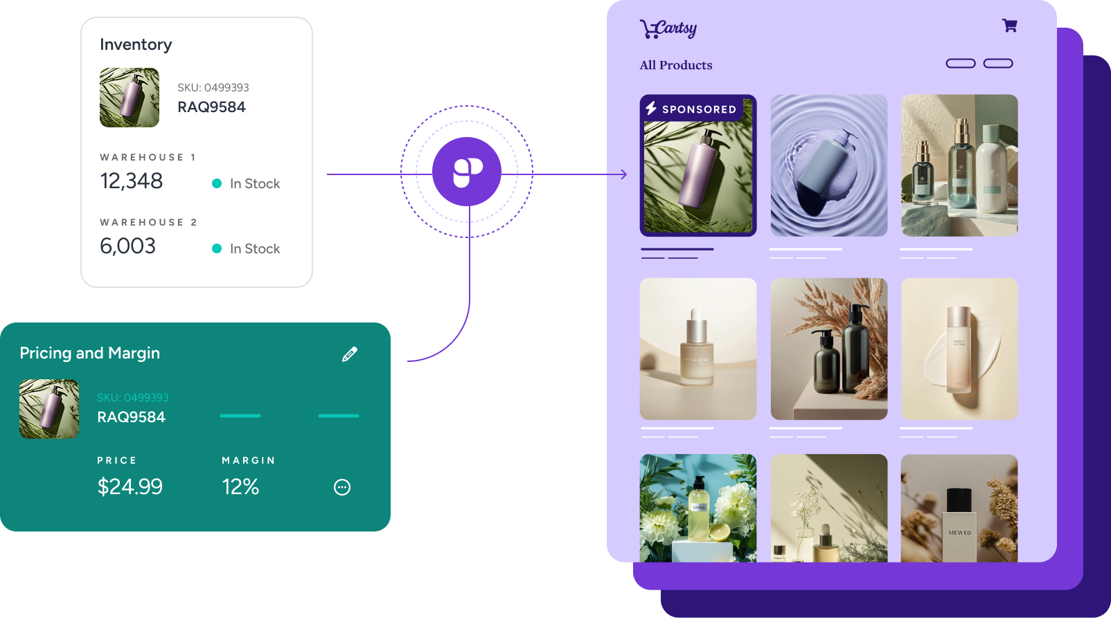 Organic content and paid media across different retailers and channels can be managed in one holistic platform. Use a single point of entry for all of your commerce, marketing, and advertising initiatives.