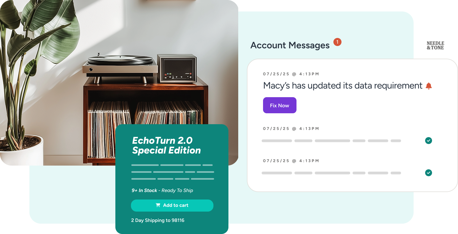 Use quick-start templates and Rithum’s AI-powered Magic Mapper to auto-transform your product data to match each platform’s requirements—cutting launch time from months to days.